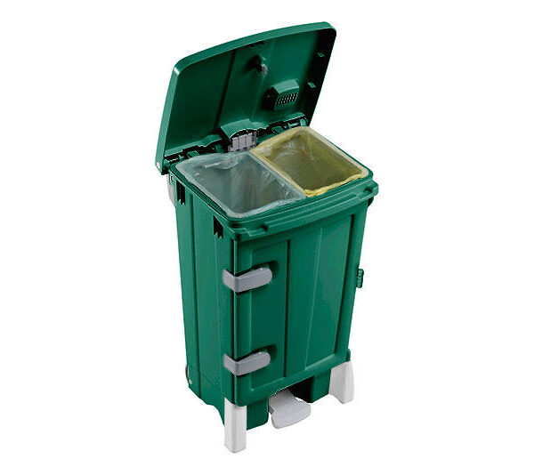 Žalias plastikinis konteineris POLARIS DELUX su durelėmis ir dviem talpom