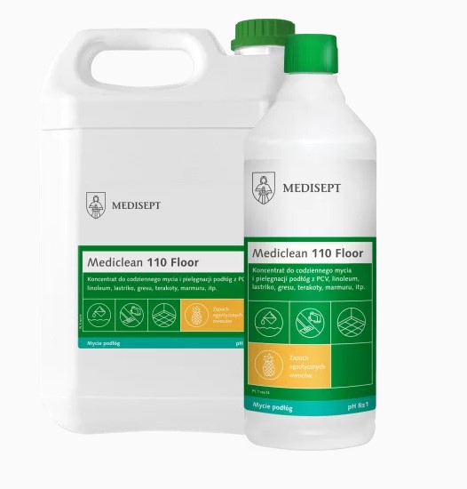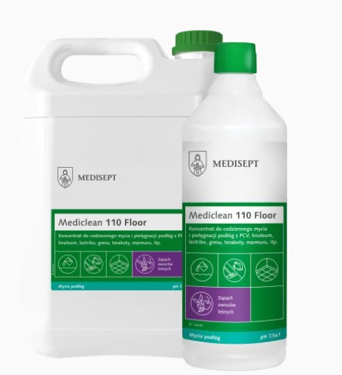 MEDICLEAN 110 – tai koncentruotas ploviklis, skirtas kasdieniam kietų grindų dangų valymui ir priežiūrai. MC 110 valiklis yra dvigubo poveikio – pašalina kasdienius nešvarumus bei apsaugo grindų dangą. Grindims suteikiamas blizgesys ir paliekama plona apsauginė plėvelė, apsauganti grindis nuo dėvėjimosi bei nešvarumų skverbimosi gilyn į dangą ir pasižyminti antistatinėmis savybėmis. Su šiuo plovikliu galima plauti tiek rankomis tiek su plovimo mašina (neputoja). Taip pat MC 110 suderinamas naudojant kartu su dezinfekcinėmis priemonėmis. Patalpų grindys išvalytos su MEDICLEAN 110 įgaus malonų aromatą. Priemonė naudojama maisto pramonėje, viešose įstaigose, paslaugų teikimo vietose, biuruose, mokyklose.