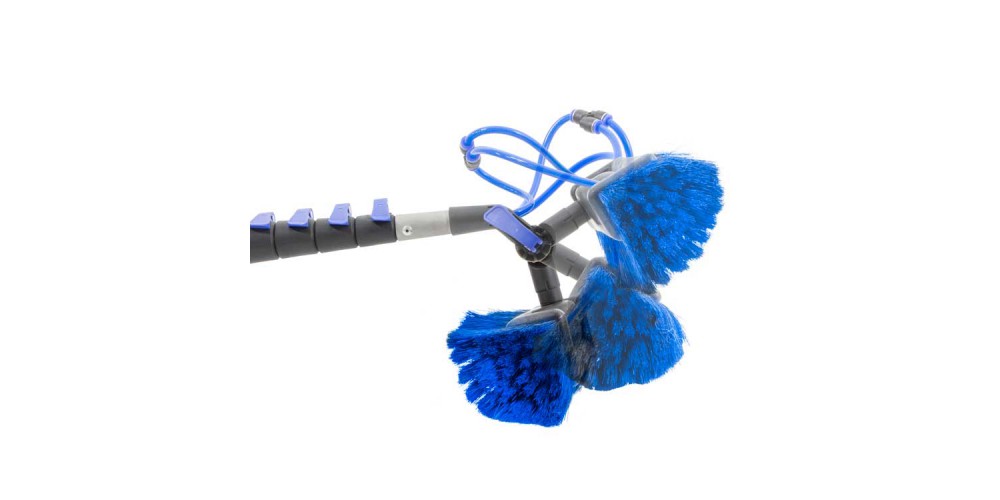Teleskopinis 6m arba 10m kotas su šepečiu, vandens padavimo žarnele ir vandens filtru - tai profesionalus įrankis saugiam ir efektyviam langų, bei saulės elektrinių modulių valymui.