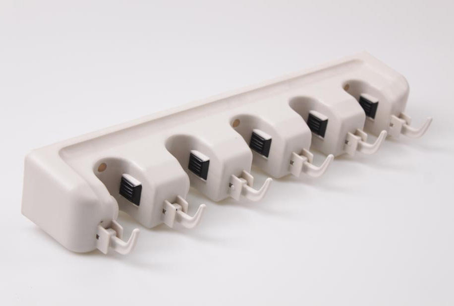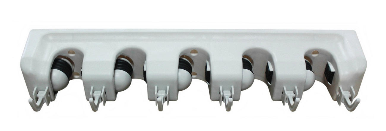 Tai unikalus buitinių reikmenų laikiklis. Į šį laikiklį galite įstatyti medinius, plastikinius, metalinius įrankių kotus iki 30 mm skersmens. Tereikia pritvirtinti jį prie sienos ir sukabinti šluotas, semtuvus, grėblius ar kitus įrankius. Taip pat ant šešių mažų kabliukų galėsite pakabinti kitus mažesnius įrankius arba šluostes. Tvarka sandėliuke ar garaže su įrankių laikikliu garantuota.
