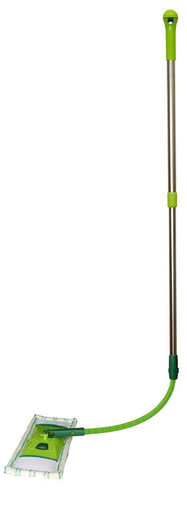Lankstus valymo komplektas FLEXI grindų valymui. FLEXI puikiai tinka valyti sunkiai prieinamas vietas. Pilnai sukomplektuotas įrankis naudojamas kaip įprastinis komplektas grindų valymui – mikrofibrinis šluostas puikiam nešvarumų ir vandens surinkimui nuo grindų, teleskopinis kotas patogiam darbui ir sandėliavimui. Tačiau, prireikus išvalyti sunkiai pasiekiamas vietas (po komodomis, po lova ir t.t), ištraukite papildomą lanksčią dalį, kuri kompaktiškai paslėpta aliuminio koto viduje, ir patogiai pasieksite tolimiausias ir siauriausias vietas. Komplektacijoje esantis mikrofibrinis šluostas pagamintas su švelniai abrazyviomis juostelėmis, kurios padės greičiau pašalinti sunkiau nuvalomus nešvarumus nuo grindų. O pats šluostas, dėka savo universalumo, tiks visų grindų tipų valymui.