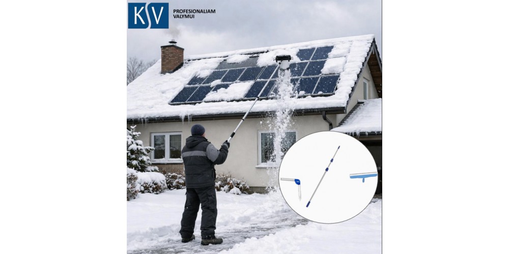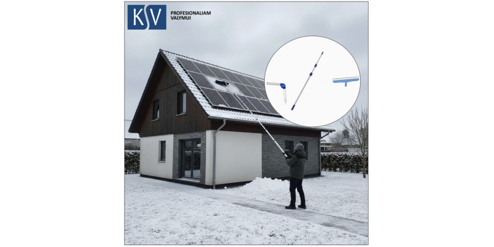 Sniego valymas nuo saulės baterijų, kolektorių, nuožulnių paviršių. Tinka sniego valymui..